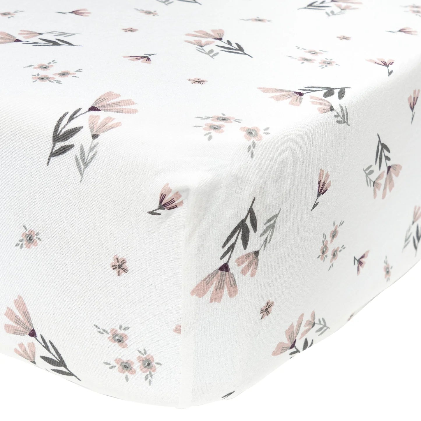 Perlimpinpin Bamboo Fitted Crib Sheet | watercolor flowers