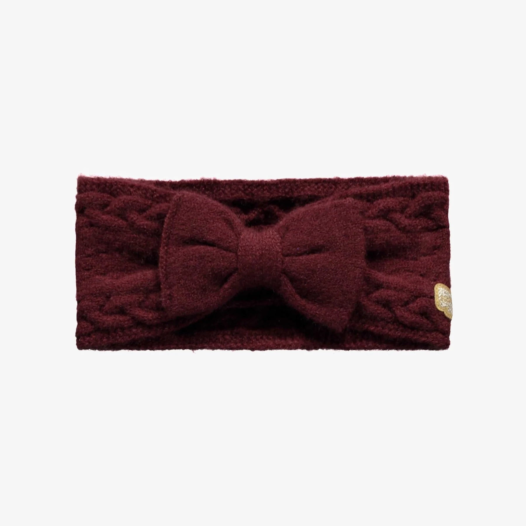 Comfortable and practical burgundy knitted headband with a pretty bow at the front and a braided pattern in the knit. You and your mini will be charmed by its softness and elasticity.
