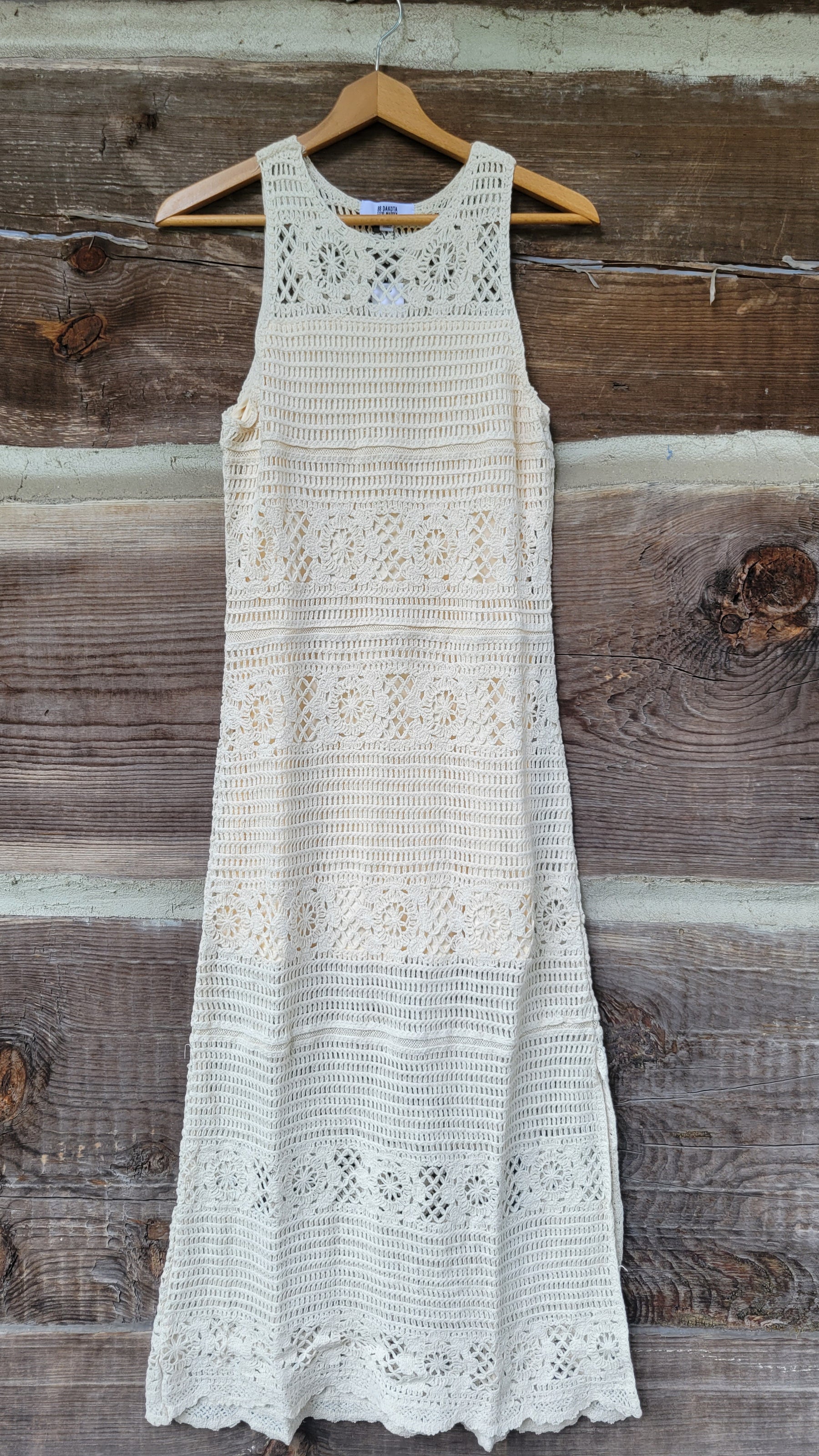 Absolutely stunning crochet dress, perfect for a boho picnic or a walk through the park.  Pair it with your favourite sandals and wavy beach hair and you're ready to go.