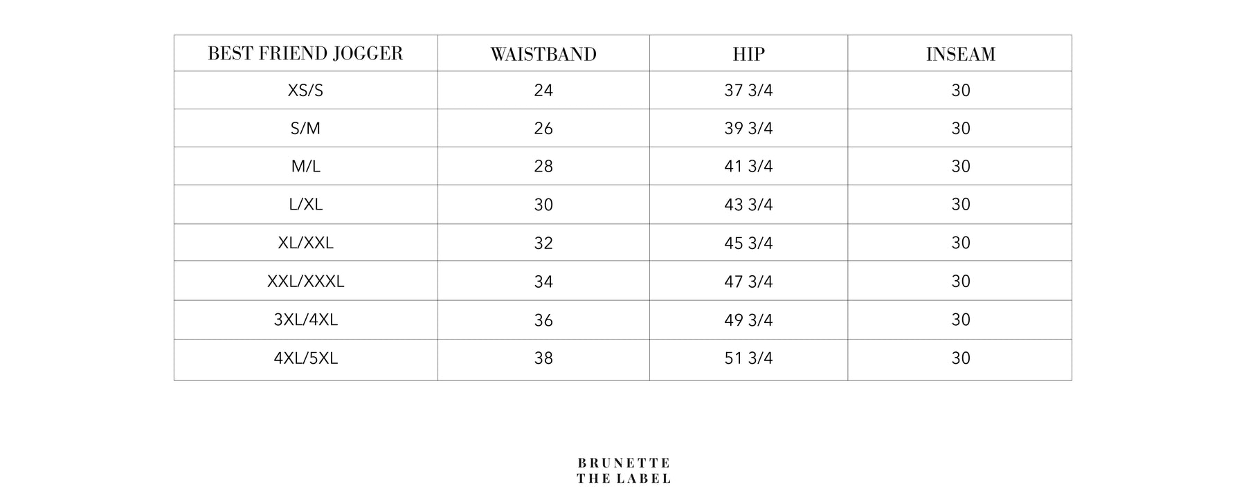 Note, this Best Friend Jogger has a slightly longer inseam length. Please check the size chart below for full details.