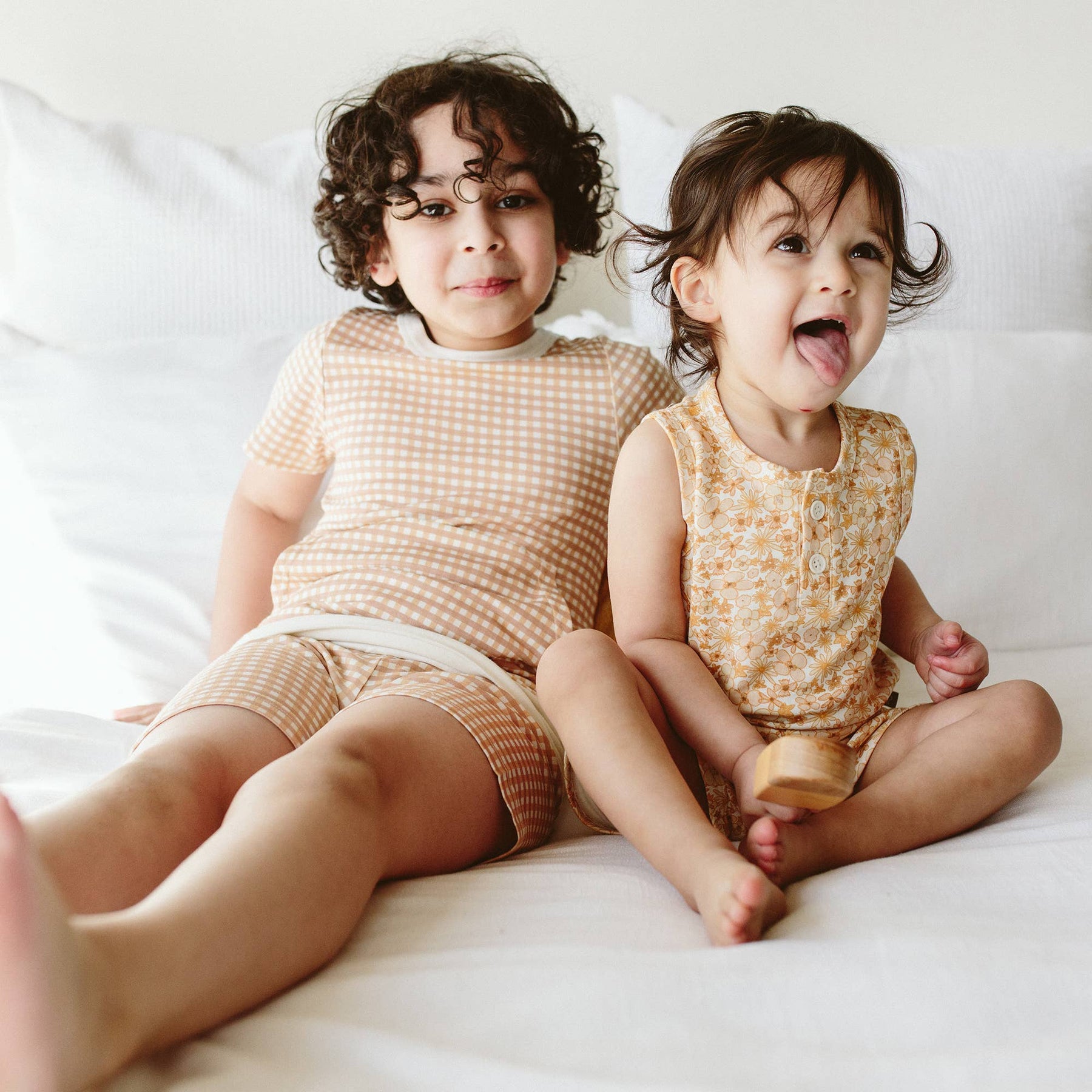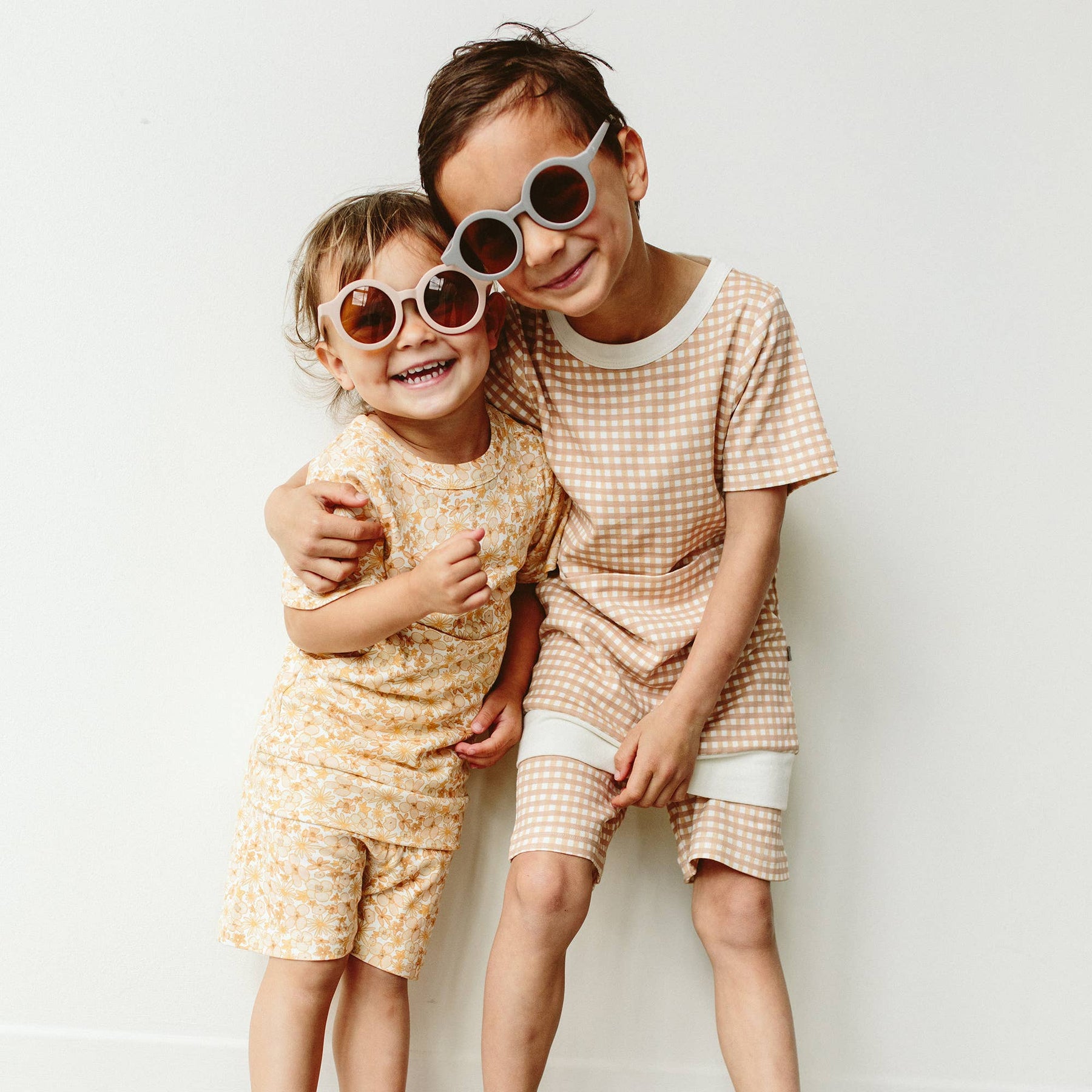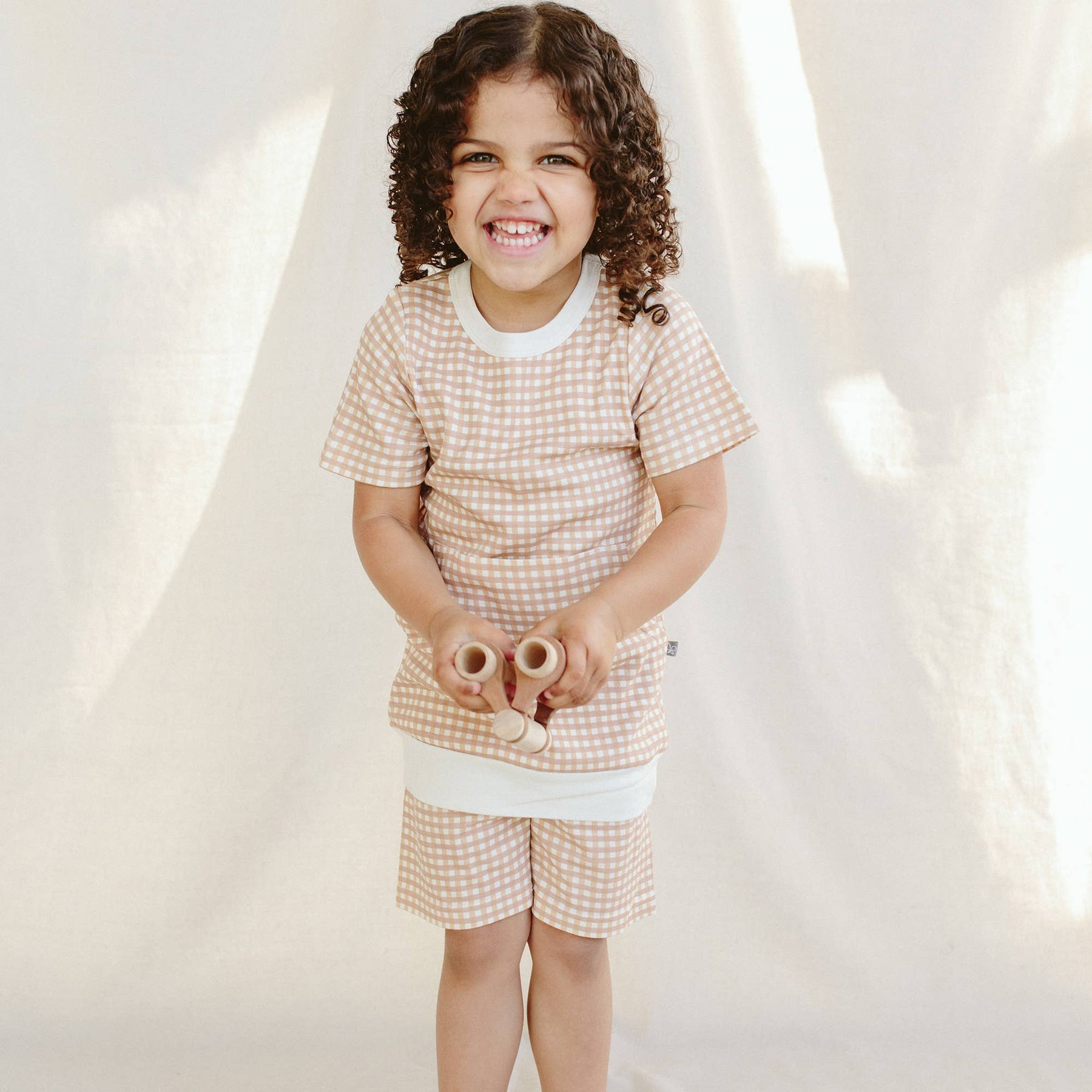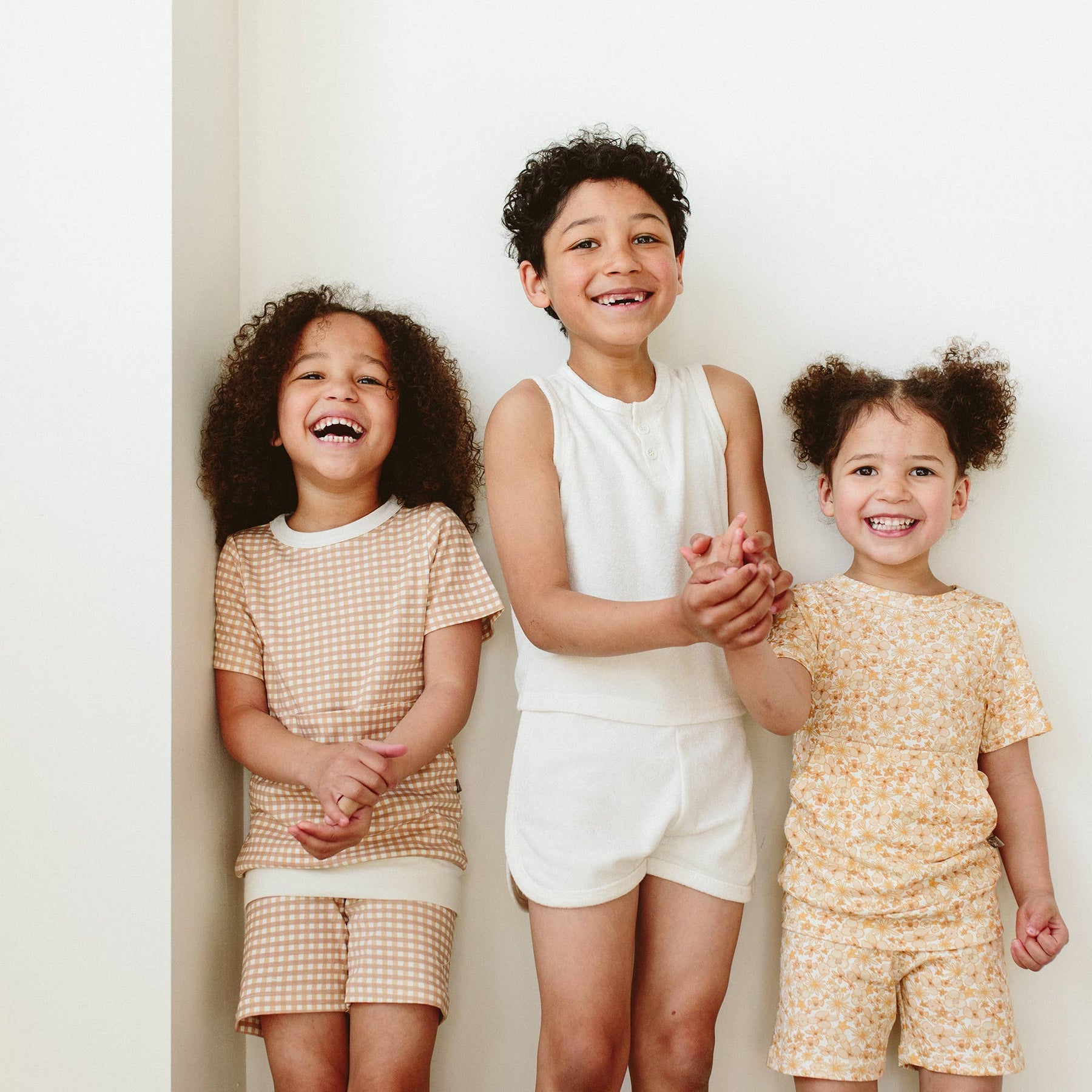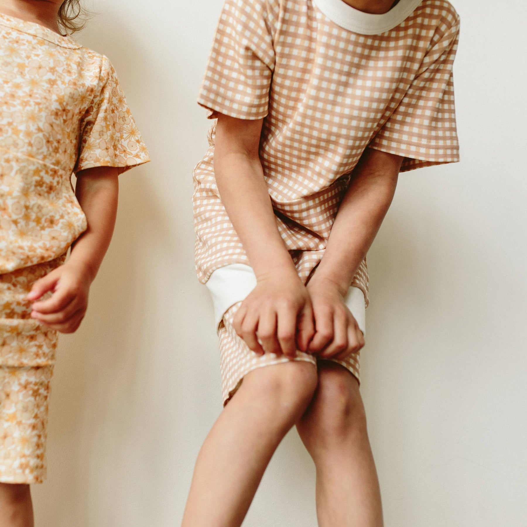 The perfect short sleeve and shorts adventure layering set! Designed with exploration in mind. Featuring a kangaroo pocket in front for all the treasures you find along the way. Fabric: 70% viscose from bamboo/30% organic cotton Care: Machine wash on low or delicate. Dry on gentle/low or line dry.
