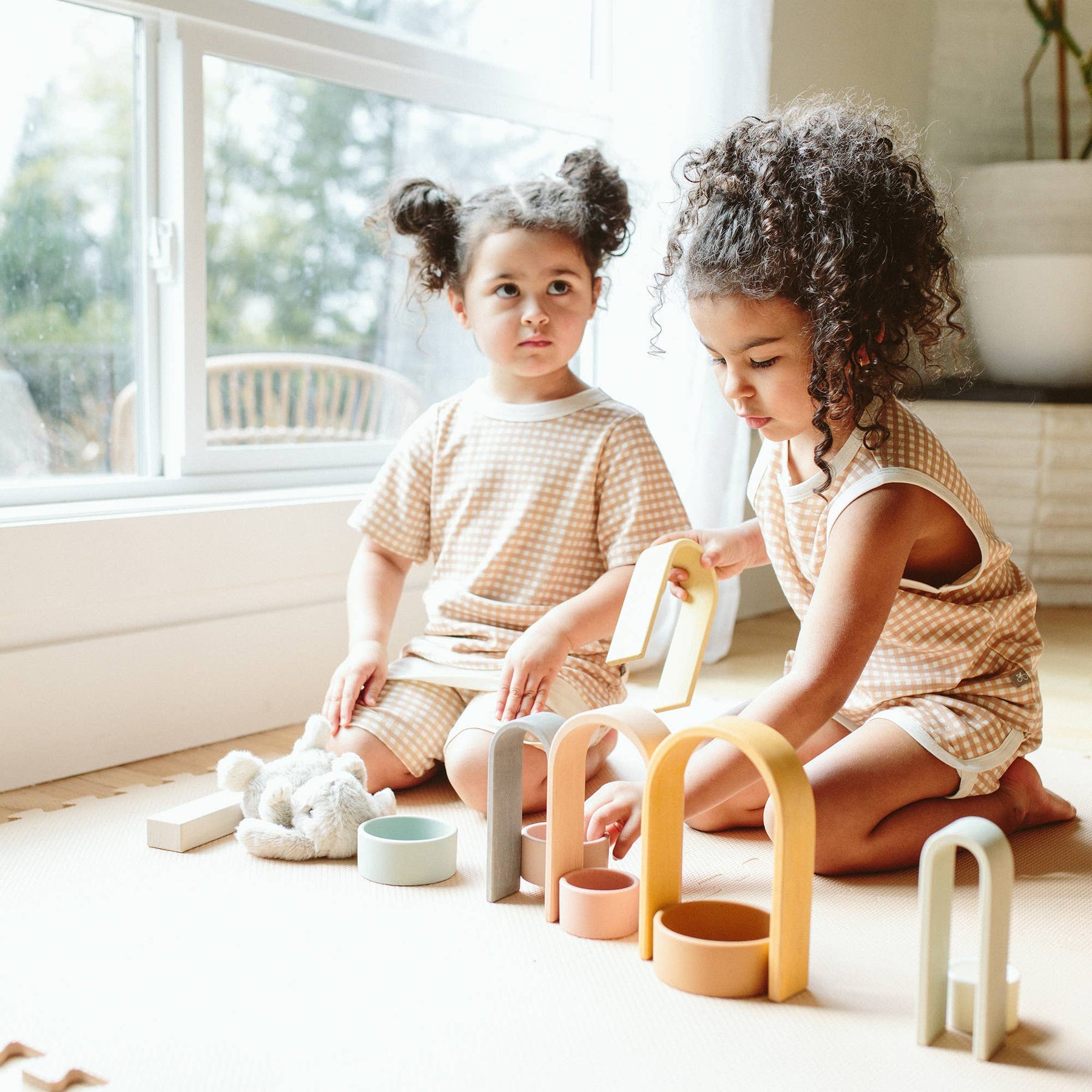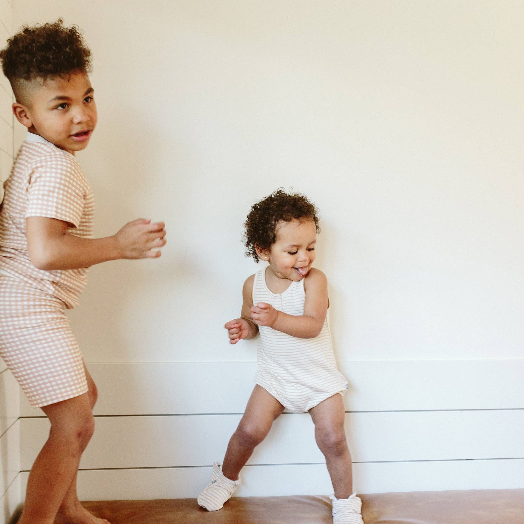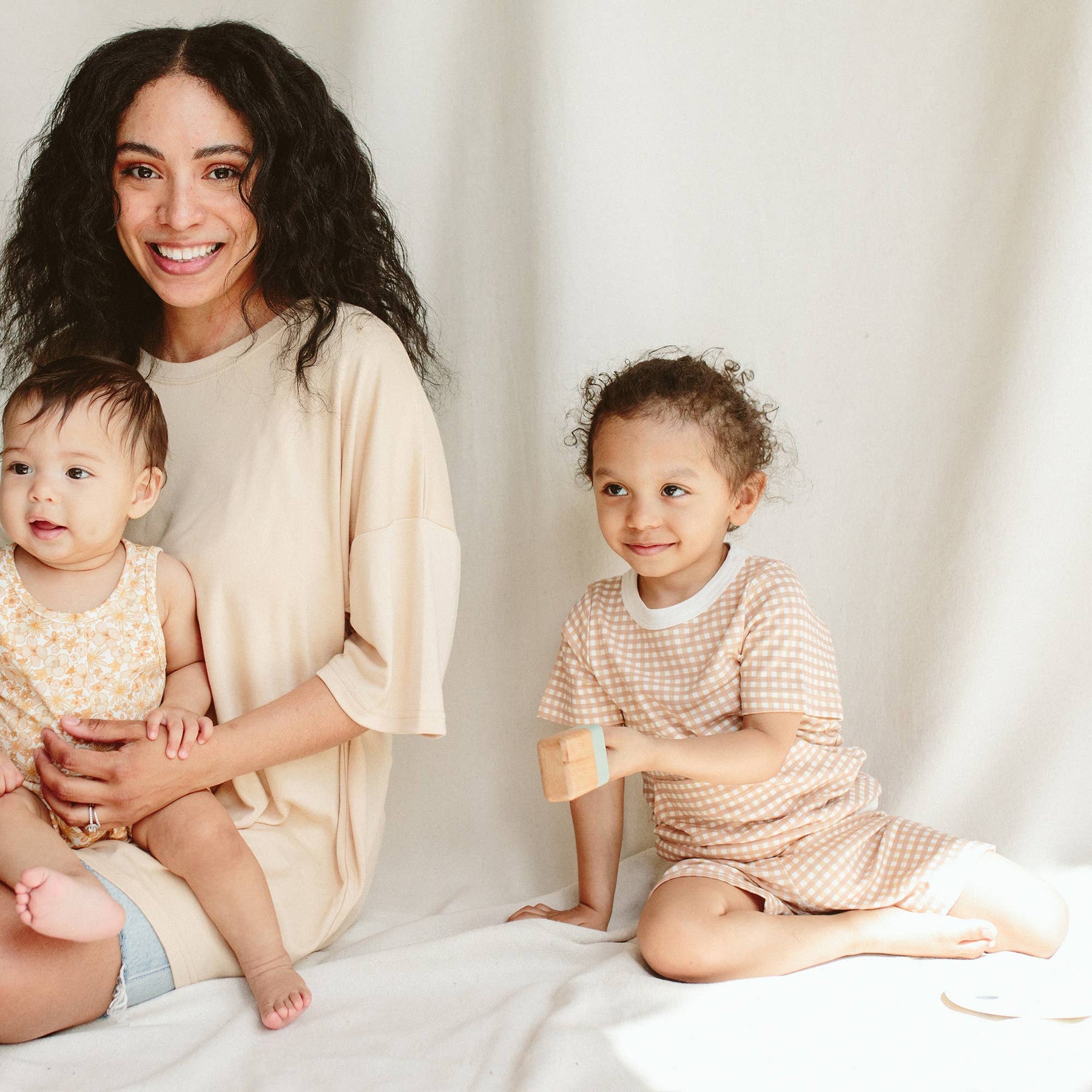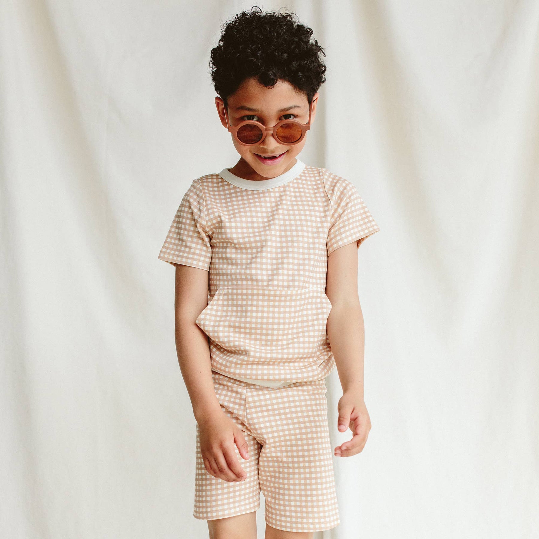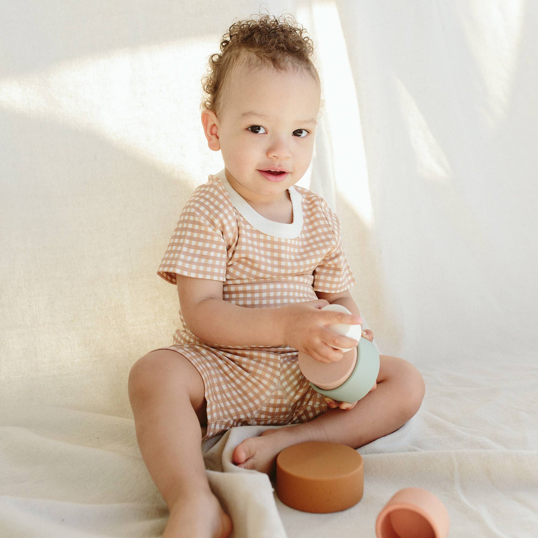 The perfect short sleeve and shorts adventure layering set! Designed with exploration in mind. Featuring a kangaroo pocket in front for all the treasures you find along the way. Fabric: 70% viscose from bamboo/30% organic cotton Care: Machine wash on low or delicate. Dry on gentle/low or line dry.