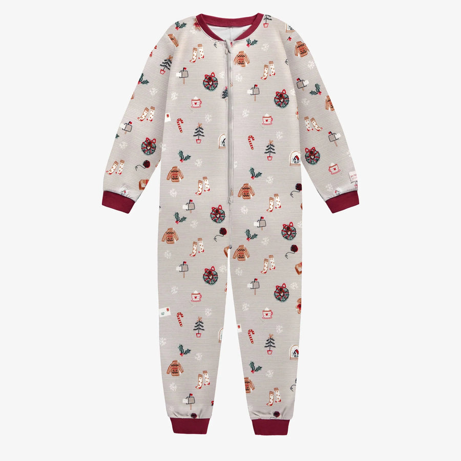 Souris Mini | Child's Grey One-Piece Holiday Pajamas