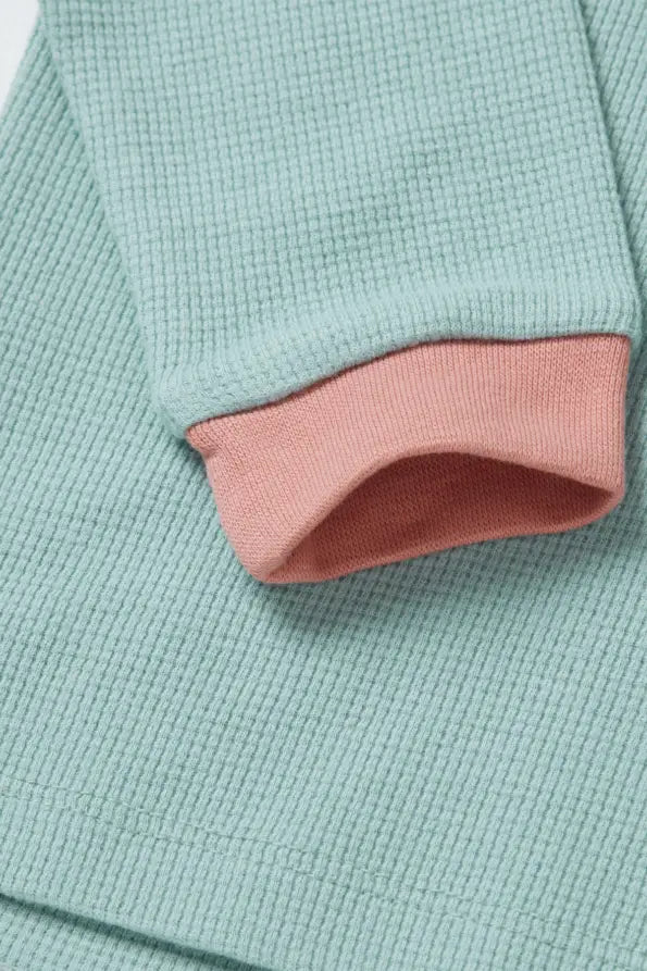 Meet the Wonder Waffles, our latest collection of sustainable kids clothing. This Ochre Recycled Long Sleeve Waffle Top slots perfectly into our wonder waffles collection thanks to its versatility. Wear as a warm base-layer or slouchy at home kids pyjamas. Made from recycled fabric.