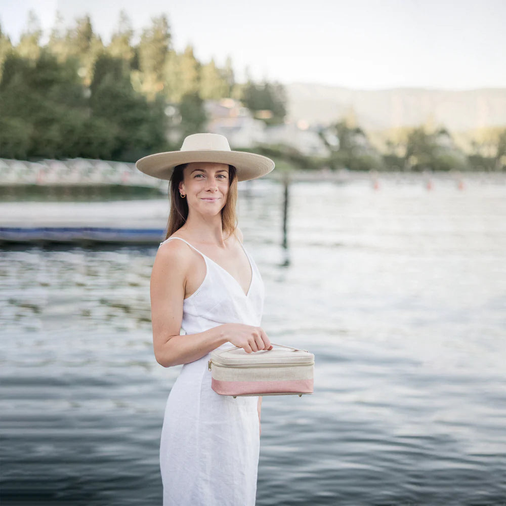Soft and feminine, the Rose Gold Colour Block Beauty Poche offers a blush-toned take on our signature linen blend. Equipped with an effortless colour block print and a timeless appeal that spans any season, this trademark style makes elevating your daily routines a breeze.
