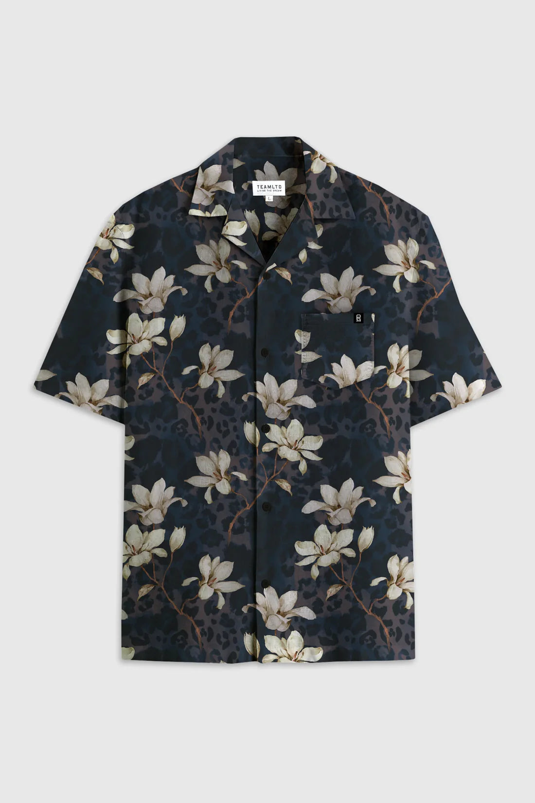 A short-sleeved button-up, cut to a regular fit in lightweight super soft 100% viscose material and detailed with a camp collar.