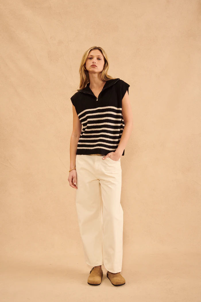 Stay warm and stylish this fall with the Otto Pullover. This 1/4 zip vest is perfect for cooler weather and the trendy stripes add a touch of flair to your outfit.
