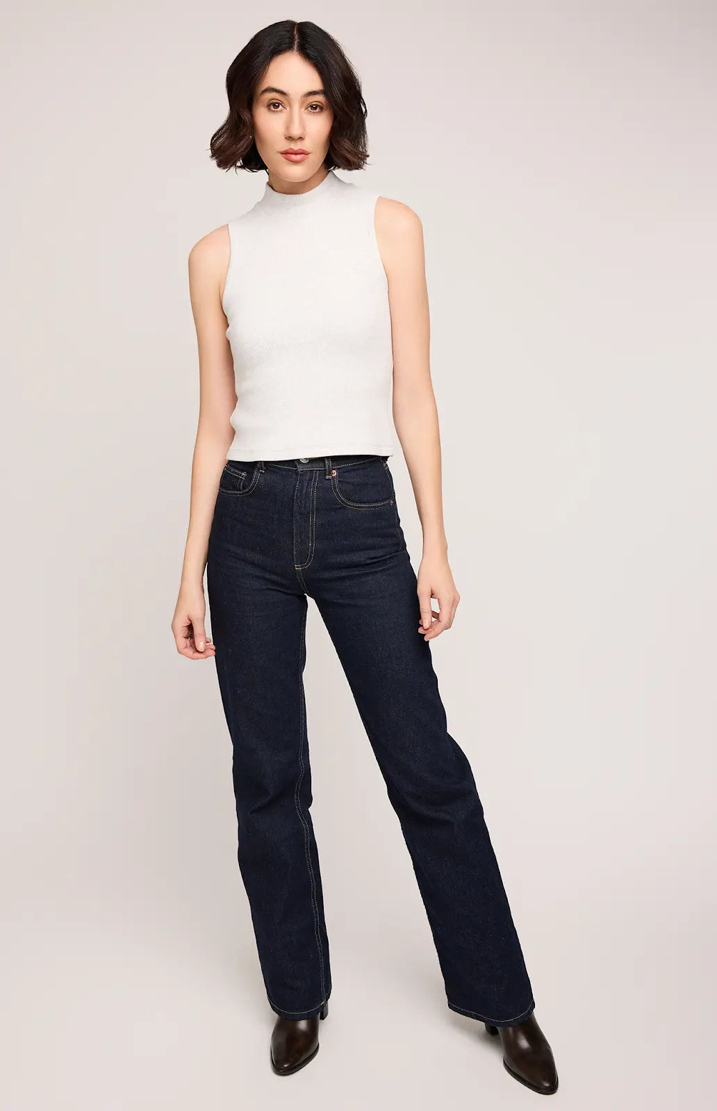 The Michelle tank is made of a mid-weight cotton viscose ribbed fabric. Features include a mock neckline and slightly cropped length for easy layering. Complete the look with the Catalina skirt
