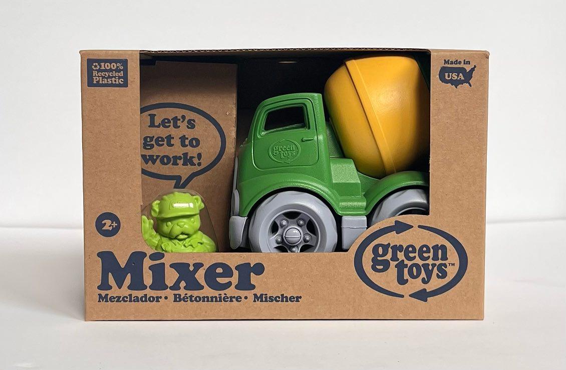 Scoop it! Mix it! Dump it! Just another earth-moving, earth-saving day at the job site for the Green Toys™ Construction Trucks! Made in the USA from 100% recycled plastic with no BPA, phthalates or PVC, the fleet includes. Perfect in a sand box, toy box, or gift box, these pint-sized trucks are just right for little hands, and can easily be tossed in a diaper bag for on-the-go fun. Each vehicle comes with its own Construction Dog, and the figures are interchangeable among all three. Built to last with no metal axles, these vehicles are made safe for children and the earth they play on.