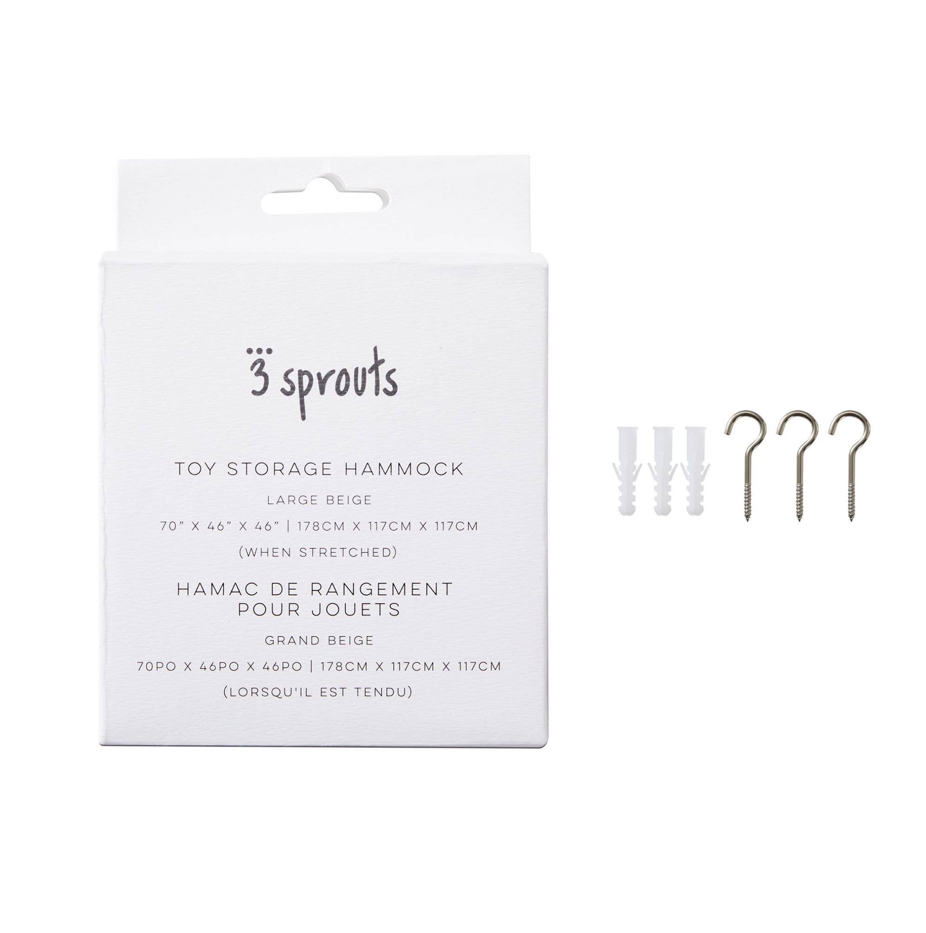 Introducing the 3 Sprouts Toy Hammock - a perfect solution for all your stuffed animal storage needs. This stuffed animal hammock is designed to hold all your child's favorite plushies, making it an ideal plush organizer. The hammock serves as a fun and convenient stuffed animal holder, freeing up valuable floor space and keeping rooms tidy. It's not just for stuffed animals either, this versatile hammock is also ideal for storing dolls, clothes, blankets and teddy bears. Our toy hammock is designed to fit snugly in any corner, making it an excellent corner stuffed animal storage solution. It's also great as a wall hammock for stuffed animals, and the sturdy netting can handle a large collection of toys. This stuffed animal net is easy to install and comes with all the necessary hardware. With its stylish design, the 3 Sprouts Toy Hammock is a great addition to any child's bedroom, playroom, or nursery. So why wait? Organize your child's stuffed animals in style with our toy hammock today!
