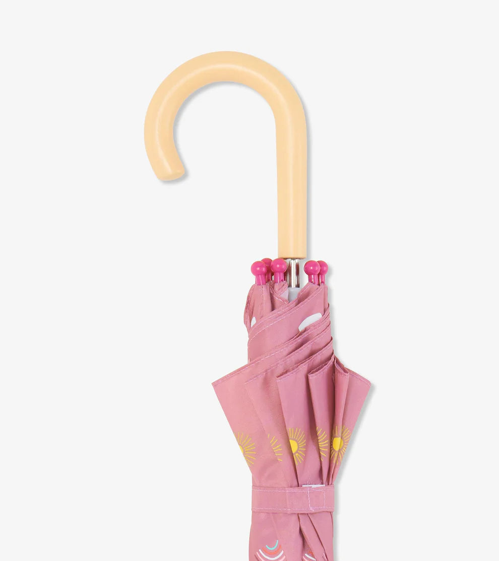 Brighten up rainy days with the Sun Charms Umbrella! Made from durable polyester, this cheerful umbrella features playful sun charm designs that will make any dreary day a little sunnier. Perfect for keeping your little one dry and happy.